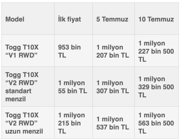 Türkiye’nin yerli otomobili Togg kullanıcılarına ve hak sahiplerine gönderilen yeni bir mail, aracı bekleyenleri üzdü. İkinci kez fiyat güncellemesine giden Togg’un en düşük modeli Togg T10X fiyatı 953 bin TL’den 1 milyon 227 bin 500 TL’ye yükseldi. 30 Nisan 2023 tarihinde teslimatlarına başlanan Togg, geçtiğimiz günlerde ilk zammını almıştı. Ancak dolar kurundaki yükseliş hala devam ettiğinden, markalar aynı hafta içinde ikinci zamları duyurmaya başladı. Bu markalardan biri de Togg oldu…