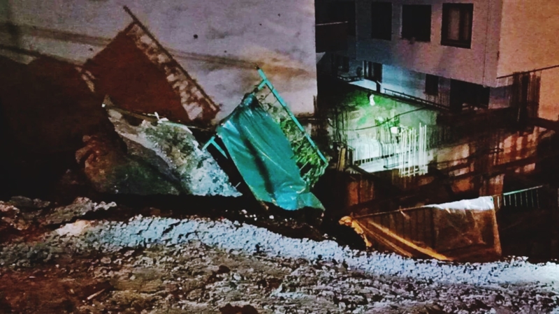 Bekirdere Mahallesi Gönenç Sokak’ta sağanak sonrası bir inşaatın yanında toprak kayması ve istinat duvarında çökme meydana geldi.