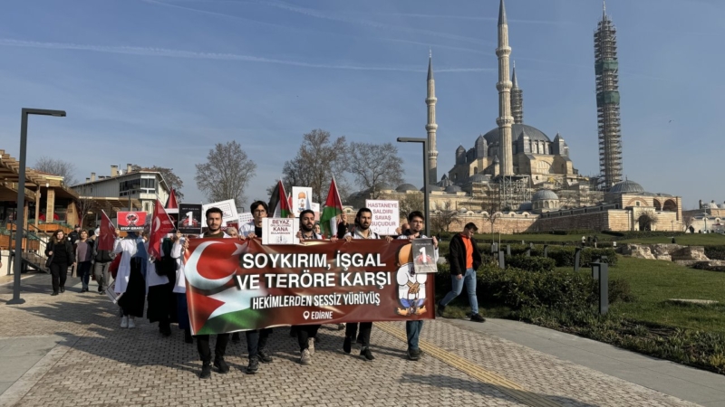 “Bu yürüyüşümüz, dünyanın hiçbir yerinde terör, soykırım ve işgali kabul etmediğimizin beyanıdır. Ülkemizde geçtiğimiz hafta yaşanan terör saldırılarında şehit olan askerlerimizin ailelerine tekrar baş sağlığı ve sabır diliyoruz. İnsanlık dışı bütün eylemlerden kurtulmak için verdiğimiz mücadeleyi sonuna kadar sürdüreceğiz! Bu minvalde tüm hekimleri, sağlık çalışanlarını ve bütün vicdan sahibi insanları harekete geçmeye, bu onurlu yürüyüşte yer alarak zulme karşı durmak adına sessiz yürüyüş kervanımızda ses olmaya davet ediyoruz.”
