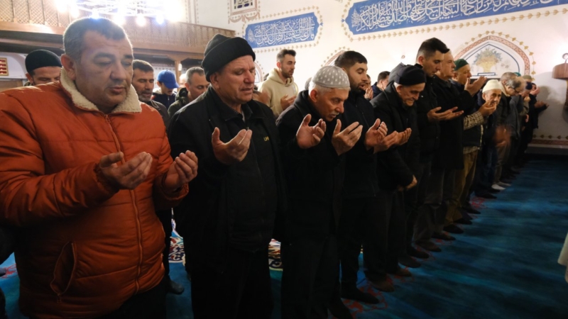 Kırklareli’nde AGD üyeleri yatsı namazının ardından Hızırbey Camisi’nde toplandı.