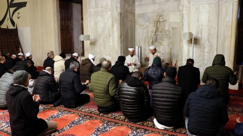 Edirne’de Eski Cami başta olmak üzere kent genelinde tüm camilerde gerçekleştirilen dua programında namaz öncesi Kur’an-ı Kerim okundu.
