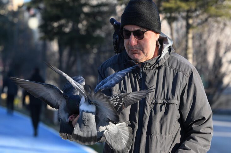 Bazı vatandaşlar, parka gelerek yem bulmakta güçlük çeken güvercinleri besledi, sokağa çıkanların bere, şal, atkı ve eldivenlerle soğuktan korunmaya çalıştığı görüldü.
