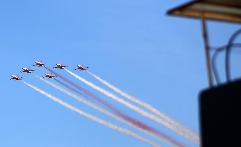 Türk Hava Kuvvetlerinin akrobasi timi Türk Yıldızları, 18 Mart Şehitleri Anma Günü ve Çanakkale Deniz Zaferi'nin 110'uncu yıl dönümü dolayısıyla Çanakkale'de selamlama uçuşu gerçekleştirdi.