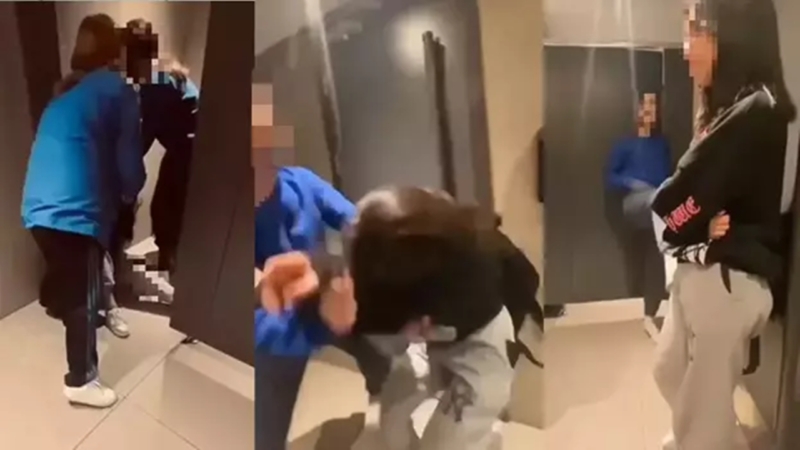 Alınan bilgiye göre, alışveriş merkezinde gezen bir grup kız öğrenci, kendileriyle gelen arkadaşlarını tuvalette darbederek o anları cep telefonuyla kaydetti.