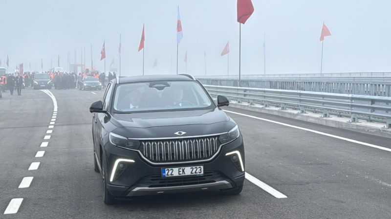 Ardından direksiyonuna geçtiği Togg'la bir süre yeni yolda ilerleyen Bakan Uraloğlu, yolun yapımında çalışan işçilerle anı fotoğrafı çektirdi.