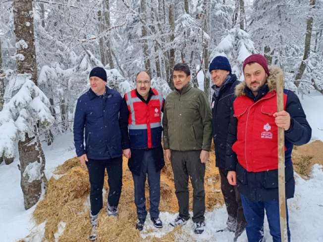 Olumsuz hava şartlarından etkilenen yaban hayvanları için Bursa Vakıflar Bölge Müdürlüğü ile Bursa Doğa Koruma ve Milli Parklar Müdürlüğü ekipleri iş birliği yaptı.
