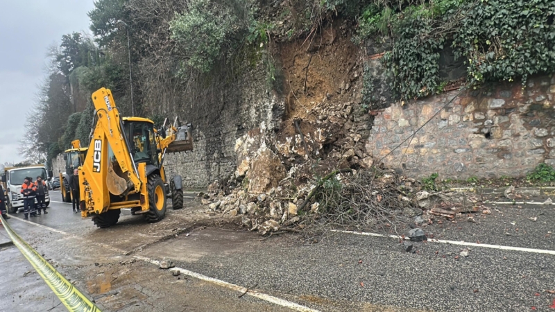 Üsküdar'da istinat duvarının çökmesi sonucu bir cadde trafiğe kapatıldı.