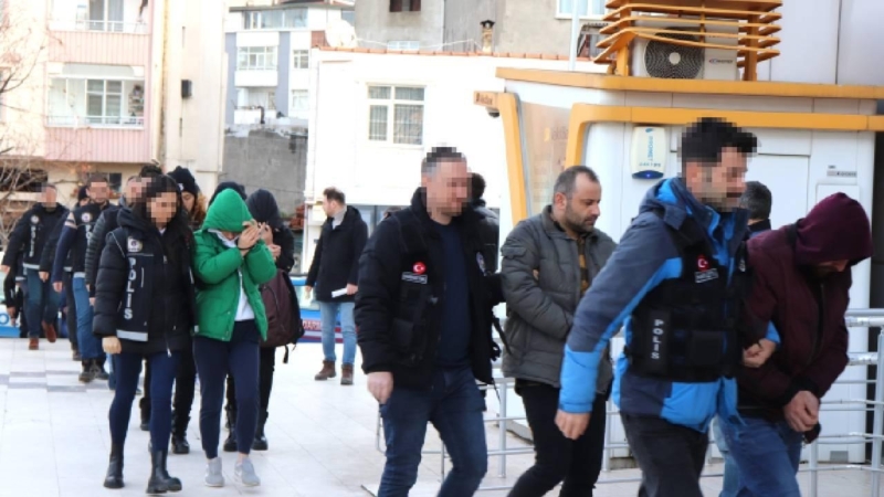 Gözaltına alınan 11 şüphelinin emniyetteki işlemleri sürüyor.