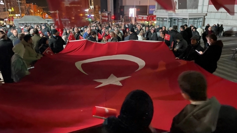Burada grup adına açıklama yapan Türkoğlu, bugün yalnızca şehitlerin evlerine ateş düşmediğini, Türk olan, dindaş olan ve kendisini bu milletten hisseden herkesin evine ateş, hüzün ve yas düştüğünü söyledi.