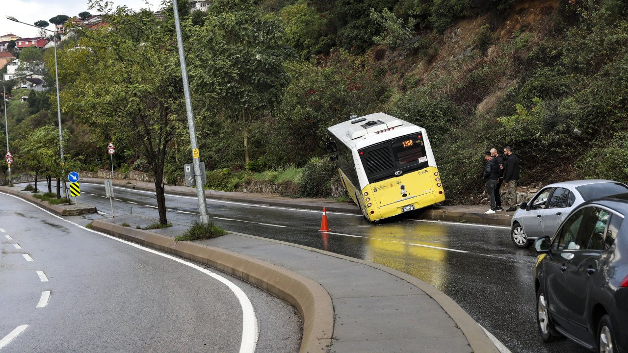 Edinilen bilgiye göre, “136-B” numaralı “Türk Alman Üniversitesi-Kavacık/Hekimbaşı” seferini yapan özel halk otobüsü, sağanak nedeniyle kayganlaşan yolda virajı alamadı.