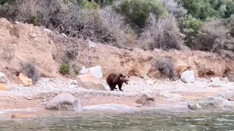 Kapaklı köyünden teknesiyle açılan bir balıkçı, kıyıya yakın bir bölgedeyken sahile inen ayıyı gördü.
