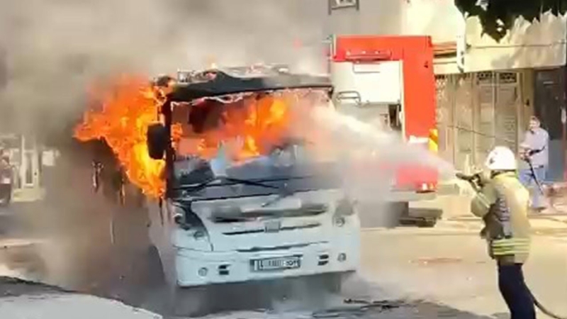 Yangında servis minibüsü kullanılamaz hale geldi.