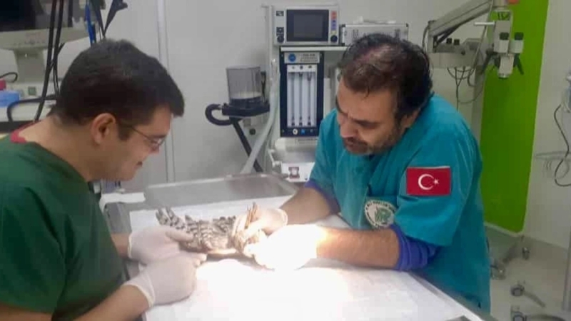 Milli Parklar Yaban Hayatı Veteriner Hekimi Ertan Şenol ve ilçedeki özel bir hayvan hastanesinde yapılan muayene ve dijital röntgen görüntülenmesinde kanadının kırık olduğu tespit edildi.