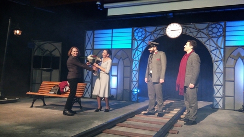 Oyunda, adam rolünde Abdulsamet Sünbül, kadın rolünde Hülya Keli ve istasyon memuru rolünde İsmail Tütüncü sahne aldı.