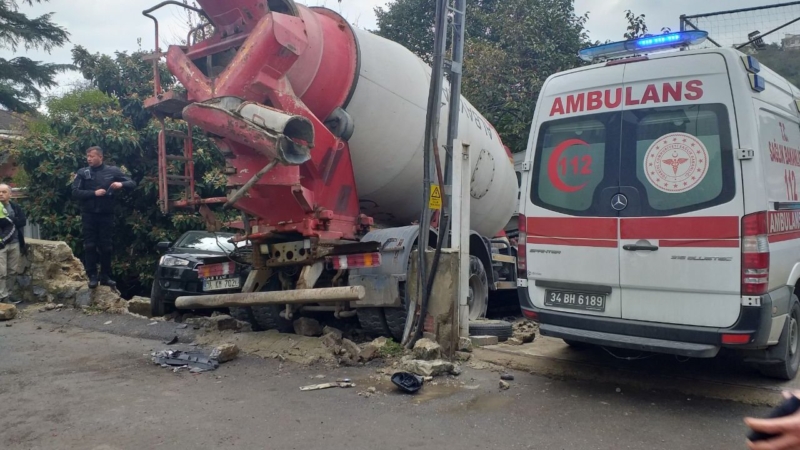 Alınan bilgiye göre K.E idaresindeki 34 KM 7020 plakalı beton mikseri Küçüksu Mahallesi’nde yokuş aşağı seyir halindeyken henüz belirlenemeyen nedenle kaymaya başladı.