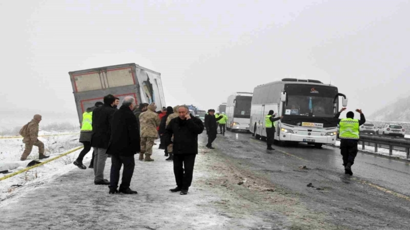 Kars’ta dün iki otobüs ile bir kamyonun karıştığı zincirleme trafik kazasında, sürücü Ömer Urağ ile yolculardan Faruk Akbulak hayatını kaybetmiş, 8 kişi de yaralanmıştı.